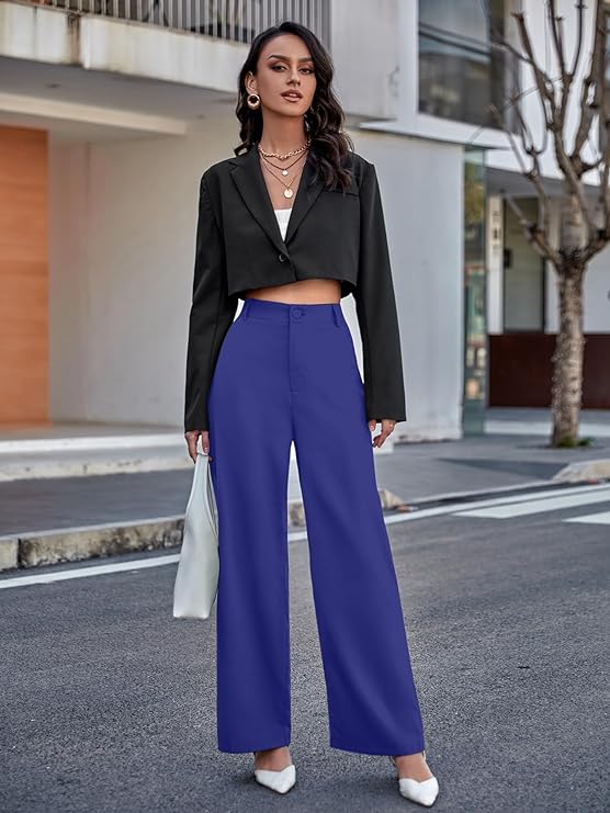 These women's relaxed blue polyester trousers are perfect for a comfortable yet stylish look. Made from high-quality materials, these trousers offer a relaxed fit and are perfect for day-to-day wear or casual occasions. The lightweight fabric provides breathability and ease of movement, making them a must-have addition to your wardrobe.